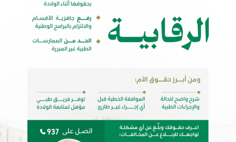 وبيّنت أن الحملة تهدف إلى رفع جاهزية الأقسام الصحية، وتعزيز وعي الأمهات بحقوقهن أثناء فترة الولادة، إضافة إلى ضمان التزام المنشآت الصحية بالإجراءات النظامية المعتمدة.